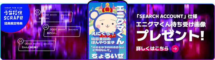 『SEARCH ACCOUNT』をご購入の団員には、「SEARCH ACCOUNT仕様エニグマくん待受け画像」をプレゼントいたします!!