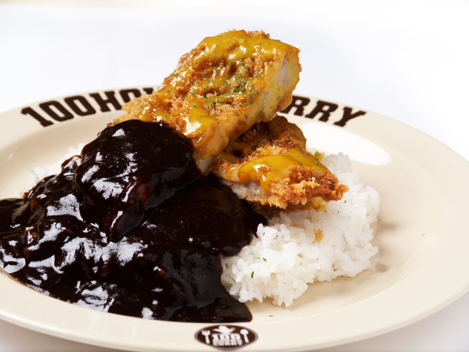 100時間カレーの手仕込みチキンカツにハチミツの甘さとマスタードのマイルドな酸味が特徴のソースが絶妙にマッチ!!濃厚なルーと相まってとんでもなく美味しいカレーが出来上がりました。
