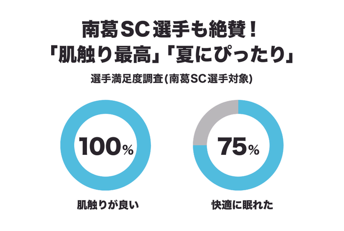 佐々木達也選手は「軽量で通気性もよいため、夏にぴったりな商品だと感じました!」と評価。玉城峻吾選手は「個人的に肌触りがとても良く気持ちよく眠りにつけました!」と睡眠の質の向上を実感しています。