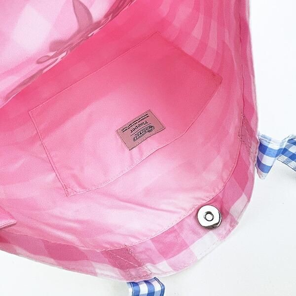 ピンクはこちら。ギンガムチェックのサイズ感がバッグと持ち手でで異なるのもおしゃれポイント。