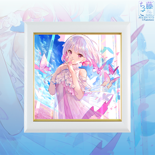 藤ちょこ先生が描いた美麗なイラスト「春色」に刺しゅうを施し、フレームに額装してお届けします。