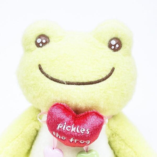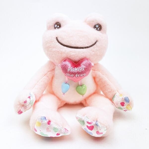 こちらはピンクのお色違いです。このピクルス特有の満面の笑みで元気が出ない日、疲れてしまった日にもほっこりと癒されそうです。ハートを大事そうにぎゅっと抱く姿にずっと見ていたくなる愛らしさではないでしょか?