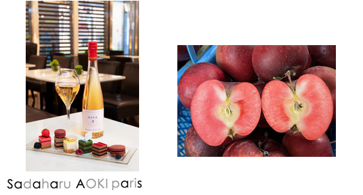 フランスで高く評価され、世界で最も注目されているパティシエの一人である青木定治氏は、赤果肉リンゴの美味しさに着目。希少な赤果肉リンゴ100%を使用した、これまでにないシードルを造りたいという想いを形にし、2024年4月に赤果肉リンゴのシードル「サダハルアオキSAYA2023」を発売しました。