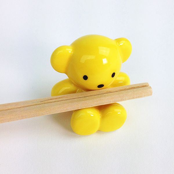 既にインテリア感出していますが、箸置きです。定番のイエローのお洋服を着たバージョンで、お座りしているのがキュートですね。サイズは40×35×52mm。陶器製なので、安定感もバッチリです。
