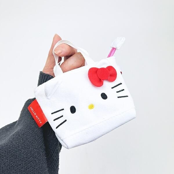 こちらは、ハローキティです。ポーチですが、ミニトートバッグのような見た目で、ぬいぐるみに持たせてるのもおすすめな使い方です。ぬい活やぬい撮りにも映えそうです。
