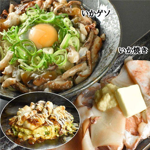 イカの豊かな風味を徹底的に追求したメニューです。バター醤油で仕上げたイカ焼きを贅沢にのせ、お好み焼きの中身にもイカゲソを使用することで、イカの個性を余すことなく引き出す設計となっています。生姜をお好みで加えることで、さらなる味わいの奥行きを演出できます。