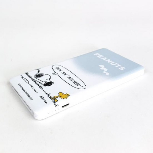 リチウムイオンポリマーの充電器に、スヌーピーのデザインが登場しました。カード型で薄いので、携帯にも便利♪これ一つあれば、スマホ約2回分充電できちゃいます。