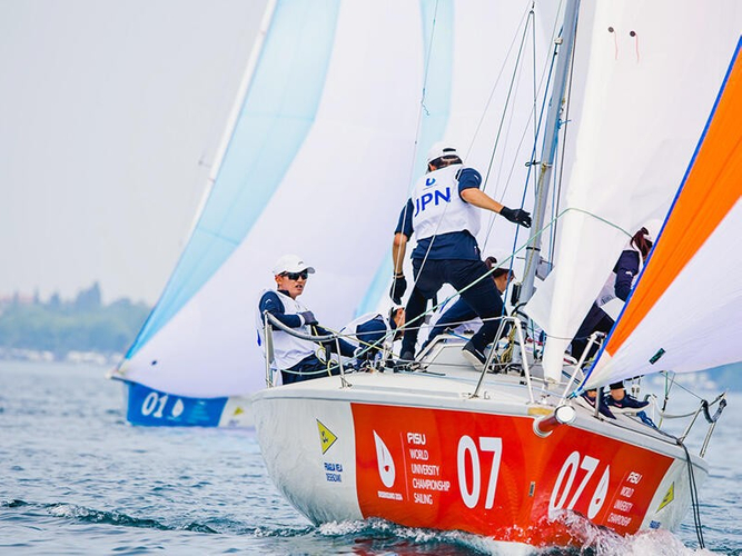 イタリア北部のリゾート地にあるガルダ湖で開催された大会に日本代表として出場した名城大学は16艇中12位に終わり、上位チームが競う「ゴールドフリート」進出には届かなかった。