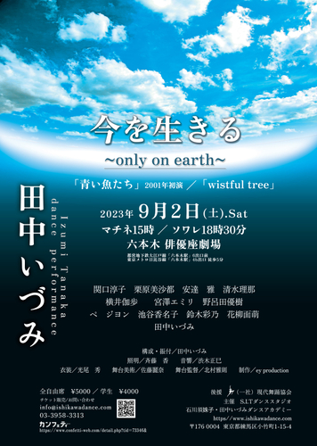 S.I.Tダンススタジオ主催、『田中いづみ 今を生きる ~only on earth~』が2023年9月2日(土)に俳優座劇場(東京都港区六本木4-9-2)にて上演されます。