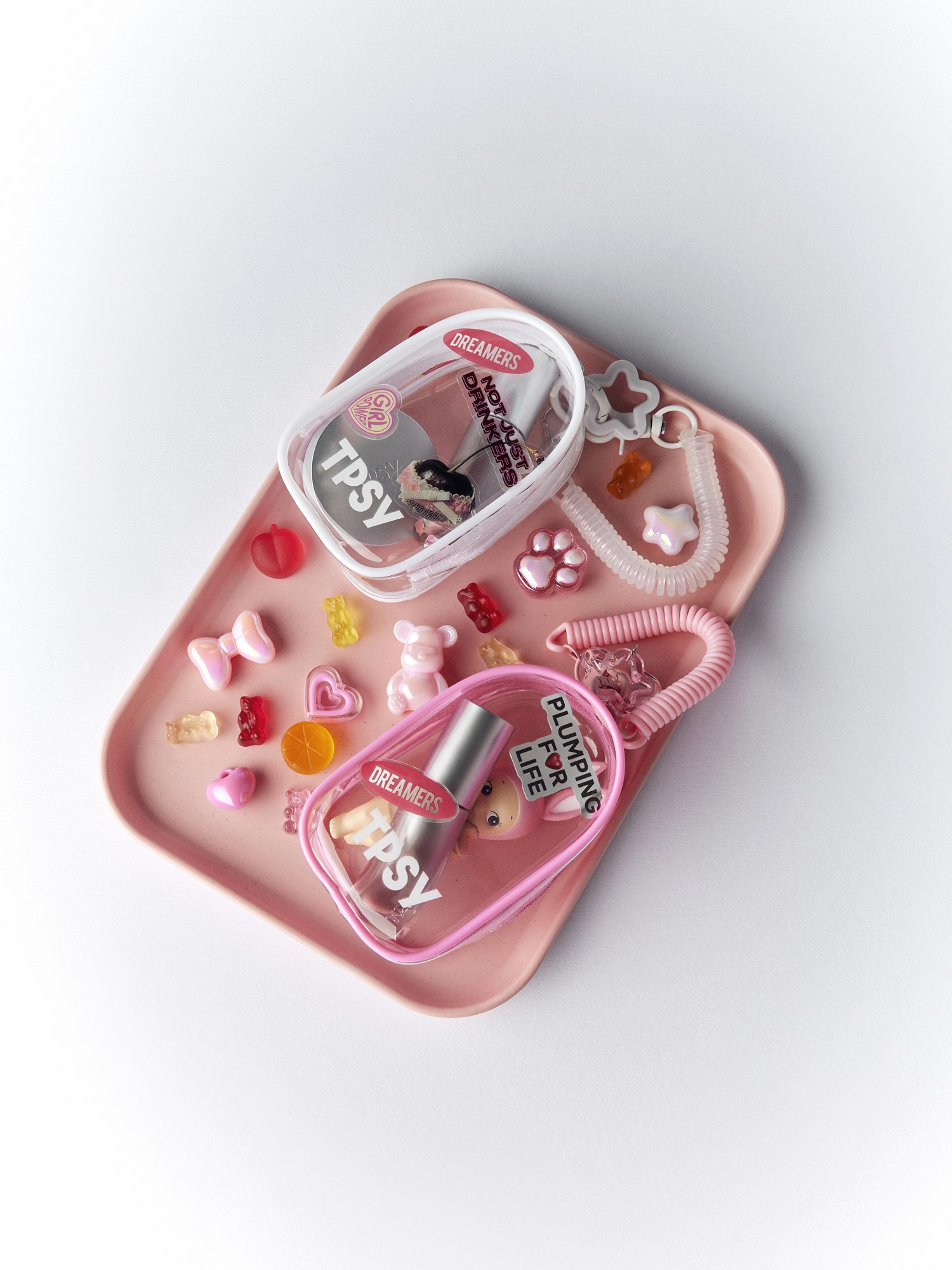 ① ベストセラー”ジューシーリッププランパー”を含む全商品3,000円以上購入時、PVCポーチ形キーリングを贈呈