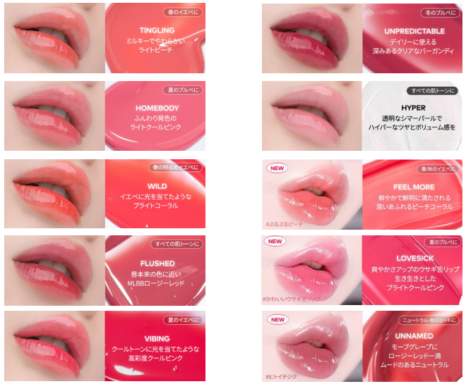 高保湿成分を配合しながらもベタつきを感じさせず、しっとりとした仕上がりを叶えるリッププランパー。優れたティンティング効果で、鮮やかな発色が長時間続きます。刺激の強いタイプとは異なり、ヒリつきや辛さのない心地よいクーリング感で、リッププランパー初心者でも簡単にプルっとしたボリュームのある唇を演出。