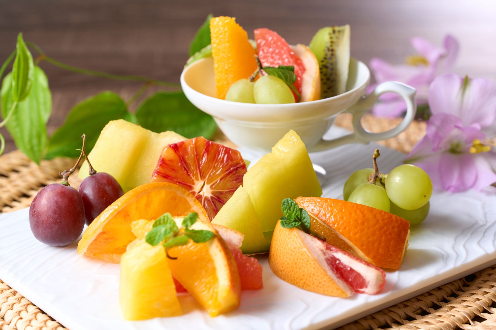 食後のひとときを彩るデザートも豊富にご用意。市場直送の旬のフルーツの盛り合わせや、フルーツショートケーキをはじめとするケーキなど、一度のご利用では食べ切れないほどのデザートを取り揃えました。