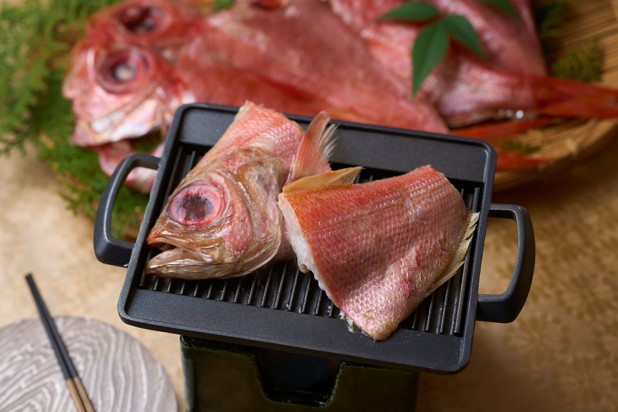 伊豆・伊東を代表するグルメといえば、新鮮な魚介料理。中でも金目鯛は、この地を代表する地魚です。本バイキングでは、金目鯛の素材本来の味わいを楽しめる炙り金目鯛のお造りをはじめ、炙りと生の食べ比べできるお寿司、ふっくらと炊き上げた炊き込みご飯、定番の煮付け、金目鯛のつみれと季節の野菜を煮込んだスープなど、多彩な金目鯛料理をご提供いたします。