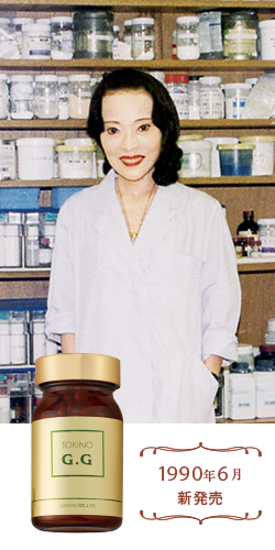 鈴木その子は食事法だけでは飽き足らず、「SONOKO式食養理論と併せながら、効率的にカラダの根本的なコンディションに働く力となるものをつくりたい」というさらなる理想を求め、10年以上の歳月をかけて研究・開発を続けました。そして1990年6月、体に不可欠なエネルギーを効率よく補給し、人間が本来持っているカラダのコンディションをサポートするという画期的なサプリメント『SONOKO G.G』をつくりあげたのです。