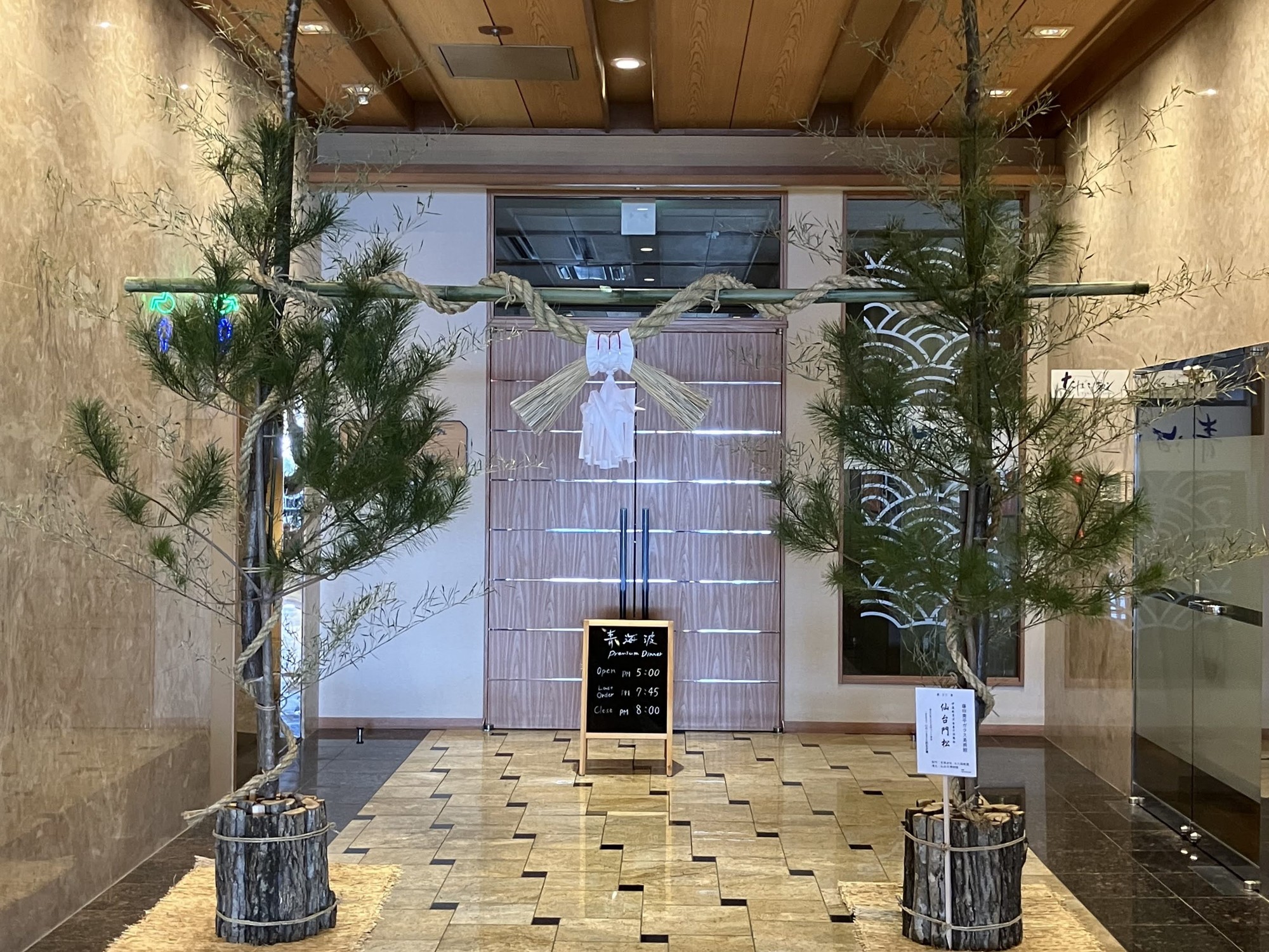 株式会社一の坊(本社/宮城県仙台市 代表取締役 髙橋 弘行/タカハシ ヒロユキ)が運営する仙台・作並温泉 ゆづくしSalon一の坊、松島温泉 松島一の坊では、江戸時代に仙台城下で飾られ、明治以降に急速に数を減らした正月飾り「仙台門松」を飾り、お客様をお迎えいたします。