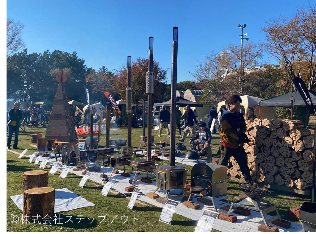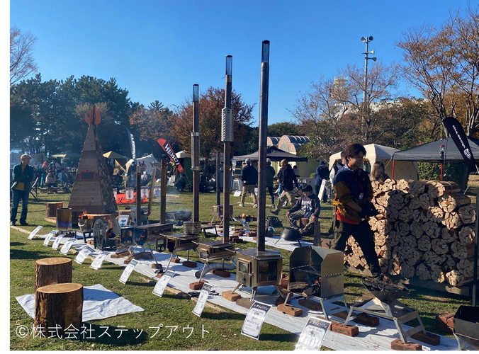 国内で販売されている焚火台・薪ストーブ(アウトドア用)が70台以上並び、火を入れて使用感を確認することができます。当日は、焚火台No.1を決める「焚火台人気投票」を行います。抽選で1名様に「焚火クラブオリジナル焚火台 」が当たります。