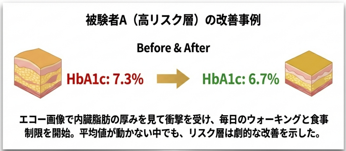 短期間で全体平均値を改善するには時間を要する一方、高リスク層においては改善傾向が確認されました。