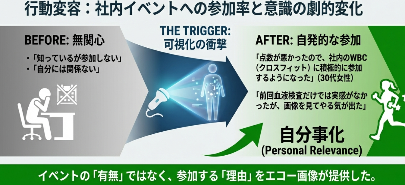 「自分の体内を直接見る」という可視化体験が従業員の当事者意識を高め、既存施策の活性化につながる結果となりました。これは、同社が推進するウェルビーイング経営を、より実効性の高い取り組みへ進化させる契機となっています。
