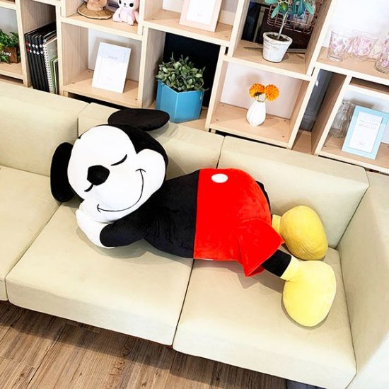 ディズニーと言えばこの人、ミッキーからご紹介♪ビッグサイズのぬいぐるみのようなミッキーですが、抱っこするのにピッタリサイズ♡横にいるだけでも安心感がある上に、抱き枕としても活躍してくれます。
