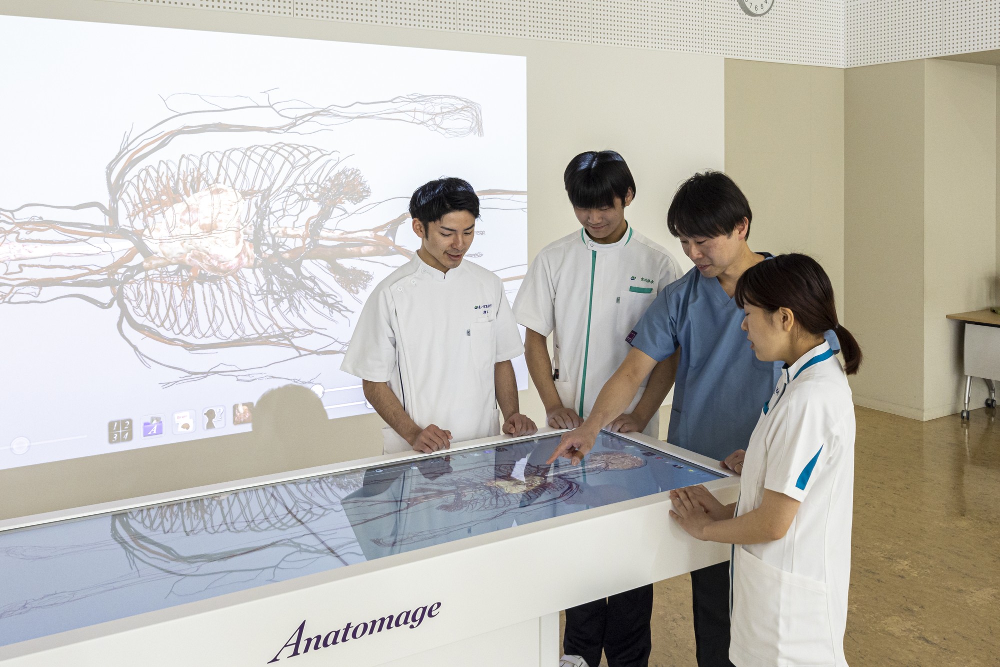 ・人体の構造・臓器をビジュアル3Dで学べる「アナトマージテーブル」を使用し医療人の基盤である解剖学の知識を修得。