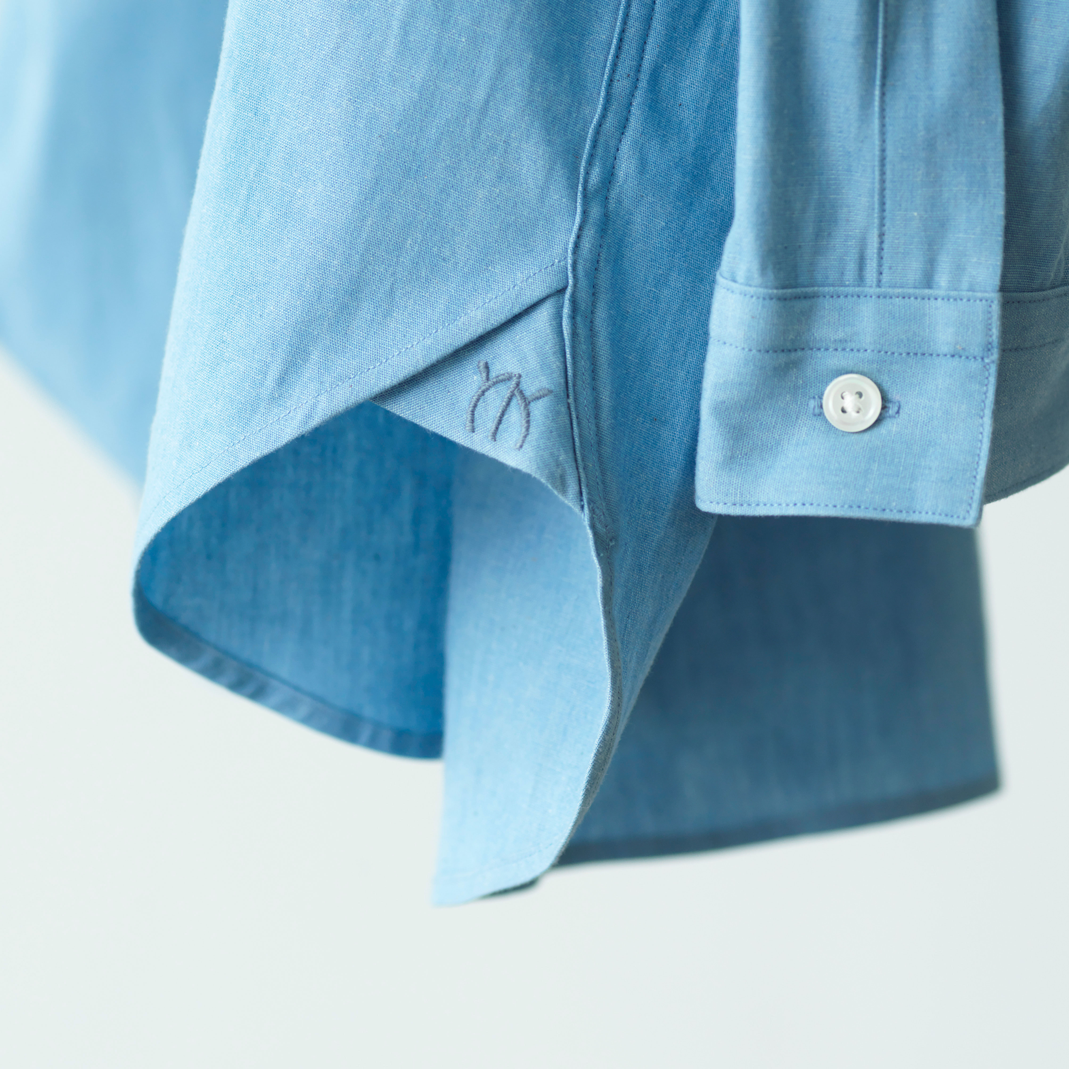 裾をアウトした際にのぞく左ガゼットにはYKの刺繍を。