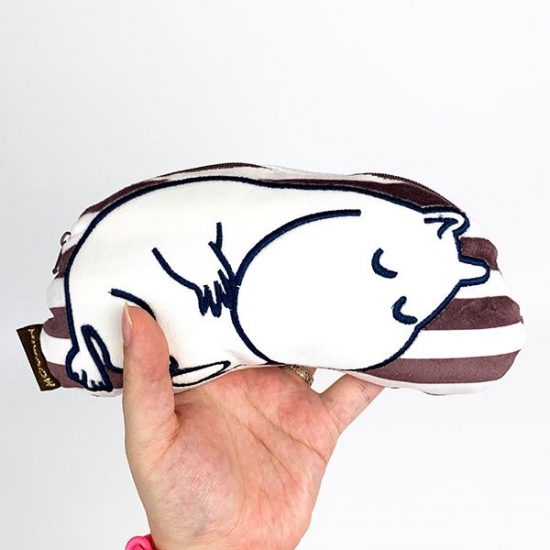 ブラウンとホワイトのボーダーにムーミンが大きくデザインされています。ぐっすり快眠中のようですね~。