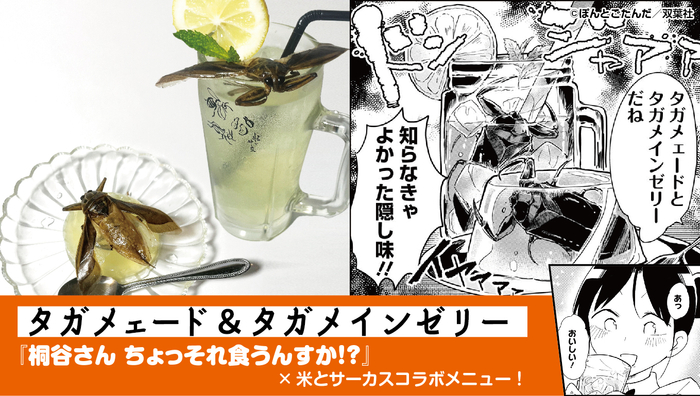 ジビエと昆虫に特化した飲食店「米とサーカス」(高田馬場・渋谷PARCO)にて、5月28日(火)から7月15日(月)まで漫画『桐谷さんちょっそれ食うんすか !?』とのタイアップメニューを提供します。