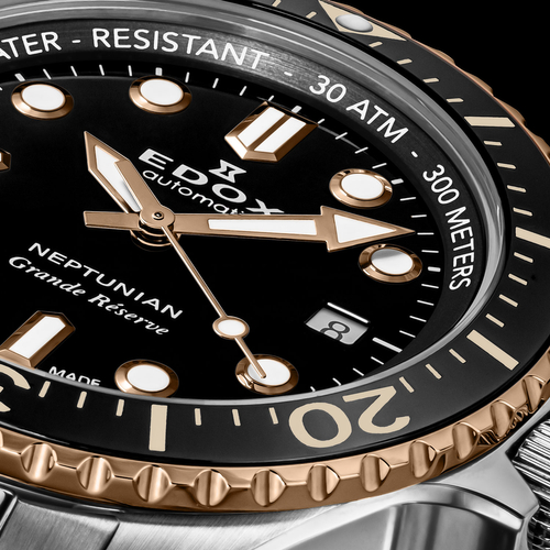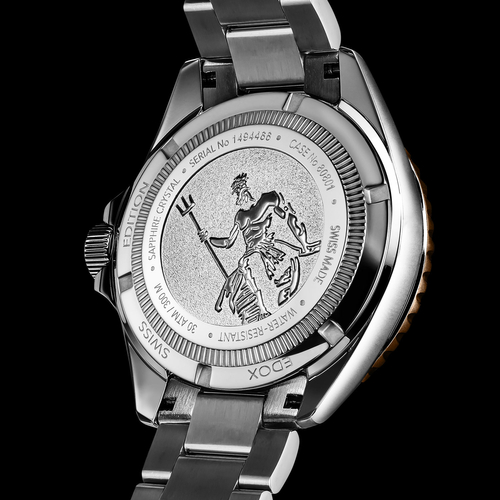 一世紀を超える時計製造の歴史を持つエドックスは、世界初の特許を取得した防水機構を開発するなど、防水時計の発展に貢献し、海を舞台に活躍する人々を支えてきました。ローマ神話における海の神・ネプチューンにインスピレーションを受けて誕生した『ネプチュニアン』は、徹底的にタフネスを追求し続けるエドックスを象徴するダイバーズウォッチコレクションです。