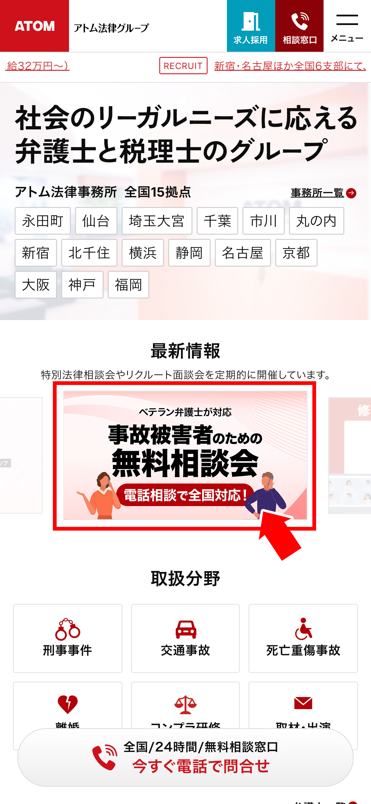 ▼アトム法律事務所の交通事故の相談受付