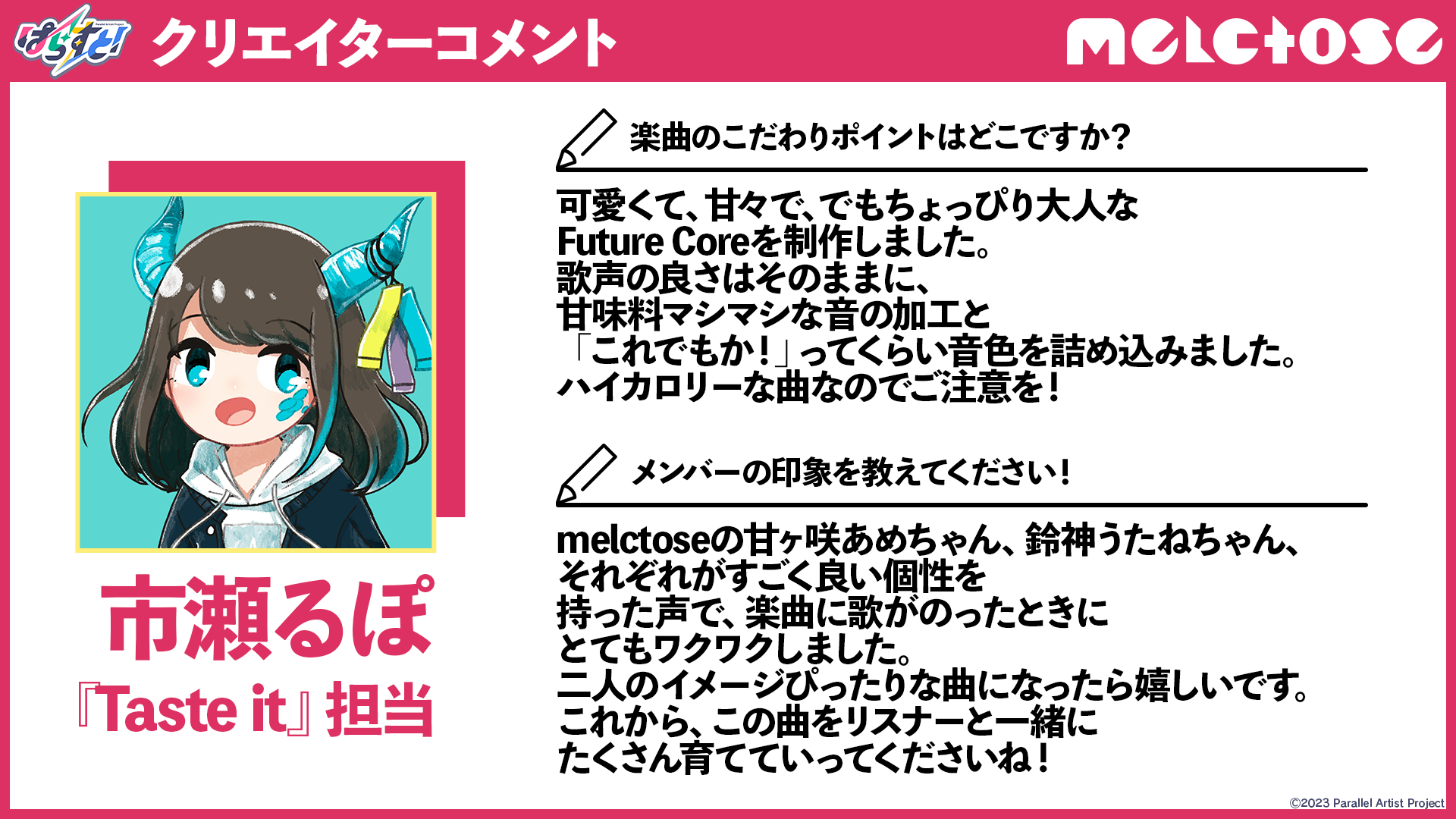 市瀬るぽ「melctose『Taste it』」担当