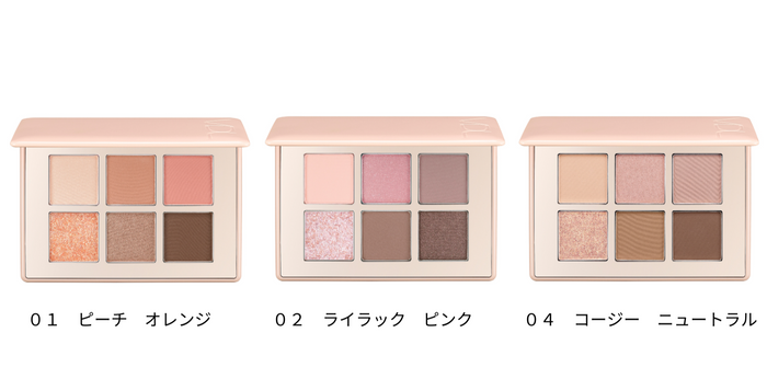 各パレットにマット・シマー・ラメカラーが入っているので、パレット一つでアイメイクからシェーディングメイクまで、立体感あふれるメイクに仕上げるアイシャドウパレットです。繊細で柔らかくしっとりとしたテクスチャーで、粉飛びしにくく肌に密着。メイクしたてのようなきれいな発色が持続し、目元を華やかに彩ります。パレットは、持ち歩きしやすいコンパクトサイズで、角度が自由に調整できるワイドミラー付き。外出先での化粧直しにもおすすめです。