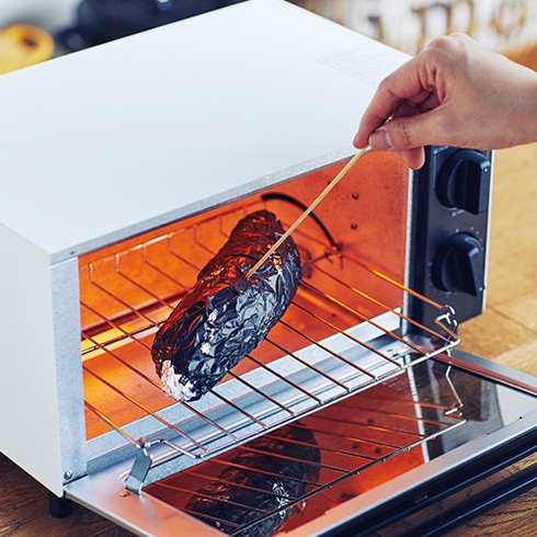 当社では、さつまいもを包んでオーブントースターで焼くだけで、本格的な焼きいもが手軽に作れるアルミホイル『⽯焼きいも®黒ホイル』を販売しています。