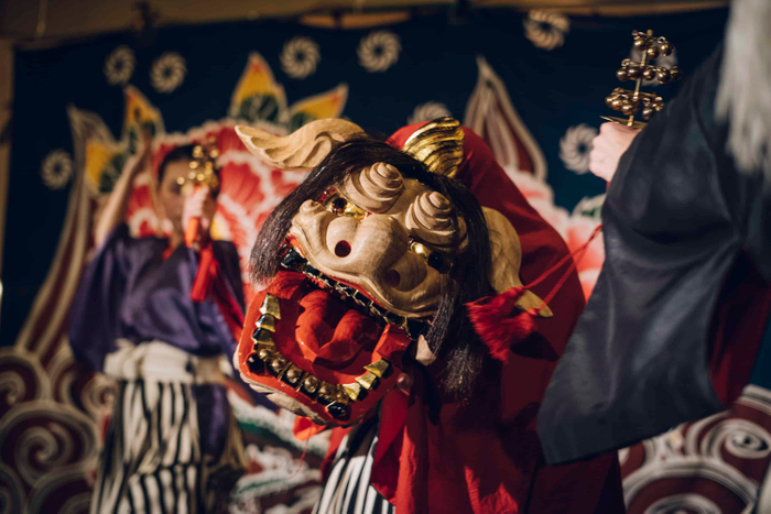 金沢市の無形民俗文化財に指定されている加賀獅子舞を、地元の工芸作家や民族芸能チームの協力を得て、独自にアレンジした内容で毎日上演しています。勇壮な武家文化の伝統を重んじつつ、振付・衣装・音楽をオリジナルで手がけた舞は、新しさや独創性にあふれています。八方睨(はっぽうにらみ)と呼ばれる獅子頭を間近で鑑賞できます。
