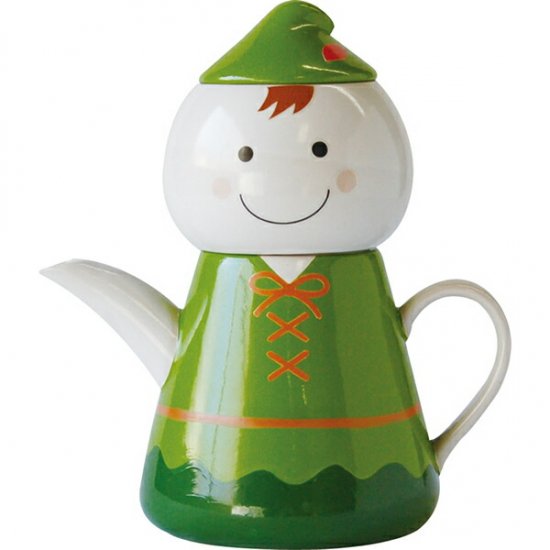 「これどうなっているんだろう?」と思ってしまうピーターパンのティーフォーワンです。ポット・カップ・茶こしの1人用ティーセットになっています♪ピーターパンの洋服や帽子がちゃんとポットに表現されていますね!