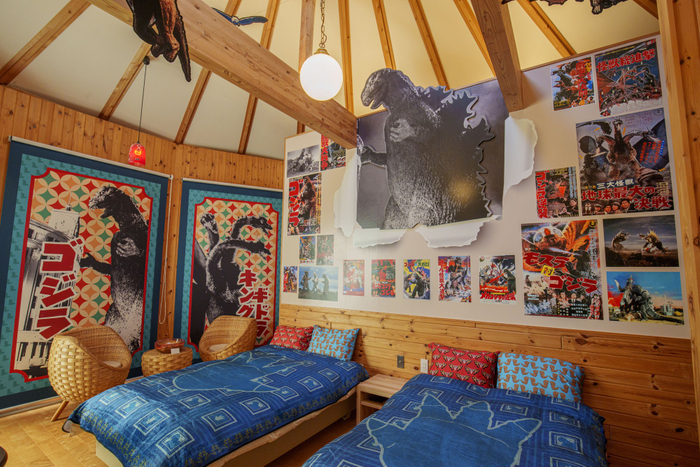 「GRAND CHARIOT 北斗七星135°」の一棟を、日本を代表する特撮映画「ゴジラ」をテーマに装飾。“昭和レトロ”をモチーフに、同作品の世界観と昭和時代が再現された空間を存分に楽しむことができる