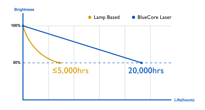 BenQ独自の技術により、快適に使用できる輝度と画質を維持しながら、ランプ寿命を延ばすことを可能にしました。通常モード使用時は約20,000時間、エコモード使用時には最長で約30,000時間の長寿命を実現し、長期間にわたり使用することができます。