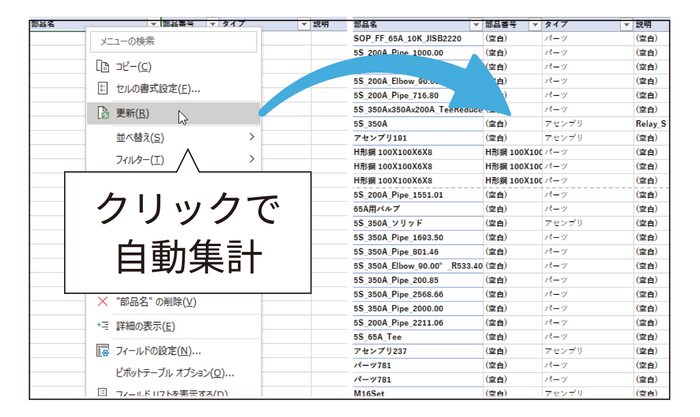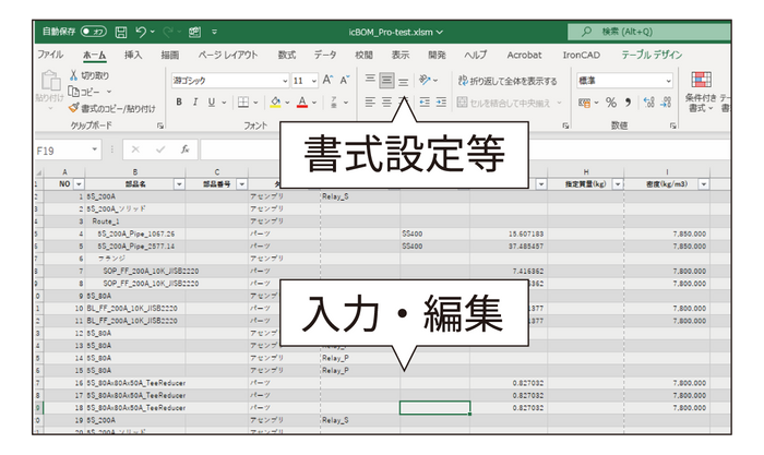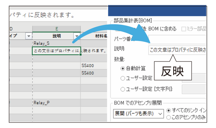 Excelと連携し、BOM集計とプロパティ編集を直感的にスピーディーに行えます。