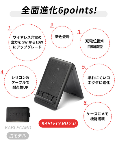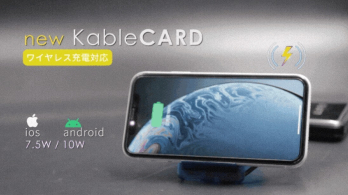 KableCARD 2.0はワイヤレス充電にも対応しています。電源と接続してスマホを置くだけですぐ充電可能。新モデルはワイヤレス充電出力を5Wから10Wにアップグレードし、快速充電が可能に!