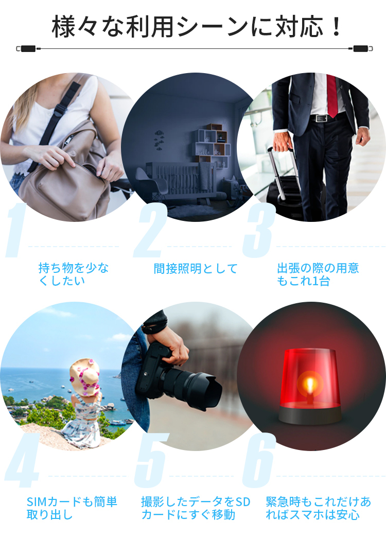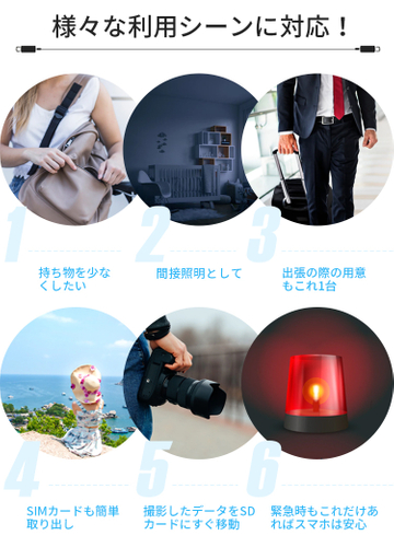 ●災害時にも1枚あると安心。ライト機能、スマホスタンド、SIMピンなど必要な時にサッと使える。