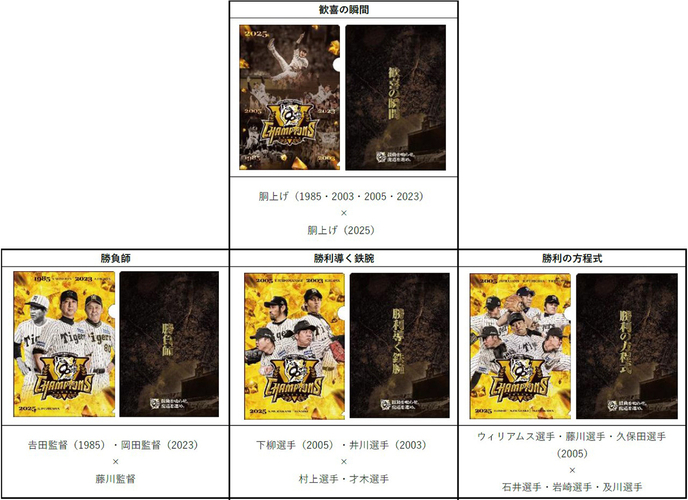 リーグ優勝の原動力となった監督・選手と歴代V戦士の勇姿が刻まれた、限定クリアファイルを手に入れて、さらなる高みへ突き進む阪神タイガースを応援しましょう!