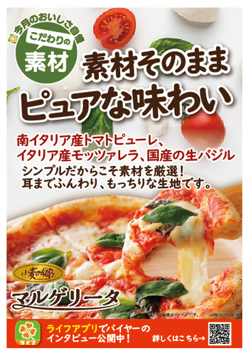 ピザは1年間で12月が一番売れます。ピザの中で一番人気のあるマルゲリータをさらにおいしくしたいと思い、ピークに合わせリニューアルしました。一番のこだわりは具材です。素材本来の自然なおいしさを味わえるピザに仕上げました。