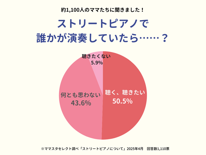 「ストリートピアノで誰かが演奏していたら……?」と問いかけ、選択肢には「聴く・聴きたい」「聴きたくない」「何とも思わない」の4つを設定。1,100名を超えるママたちが回答を寄せてくれました。