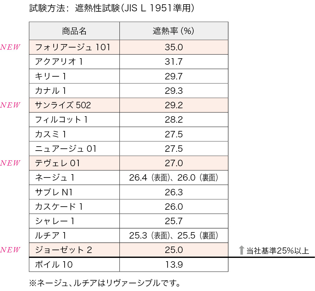 商品点数:遮熱シアー 15柄、UVカットシアー 13柄
