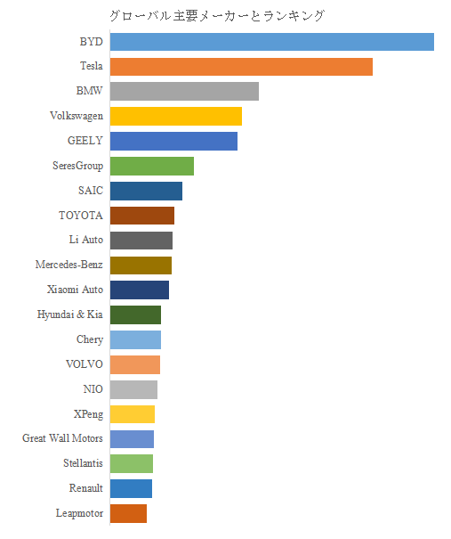 LP Informationのトップ企業研究センターによると、電気自動車の世界的な主要製造業者には、BYD、Tesla、BMW、Volkswagen、GEELY、SeresGroup、TOYOTA 、SAIC、Li Auto、Mercedes-Benzなどが含まれている。2025年、世界のトップ10企業は売上の観点から約60.0%の市場シェアを持っていた。この顔ぶれは、中国勢が量産スケールと価格帯の厚みで市場の重心を形成し、米国勢がソフトウェアと直販モデルで高収益の型を提示し、欧州勢がブランド・安全・規格対応を武器にプレミアムと法人需要を深掘りする三極構造を示す。中国では、モデル投入の速度と部品内製比率が競争力となり、BEVとレンジエクステンダ/PHEVの組み合わせで需要の谷を埋めやすい。米国では、電池調達と充電網、製造最適化を同時に回す企業が、価格改定の自由度と市場の規模を獲得する。欧州では、CO2規制と安全規制が技術投資の方向性を規定し、プラットフォーム共通化と工場転換が利益体質を左右する。日本・韓国では、電動化を既存の品質文化とグローバル生産に接続し、電池・モーター・制御の垂直統合度合いが収益の振れ幅を決める。企業間競争は、航続や加速性能の差から、電池の調達力、充電の体験設計、故障率と保証費の管理、そしてソフトウェア更新を含む車両ライフサイクル運用へ重心が移る。