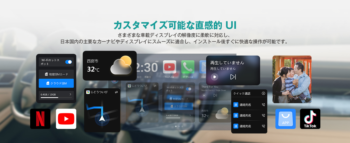 (1) 有線CarPlay/Android Autoをワイヤレス化。日本で使える主要アプリにも幅広く対応