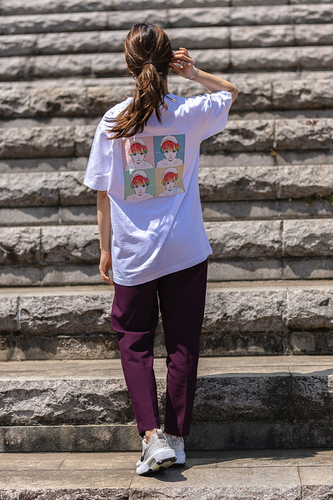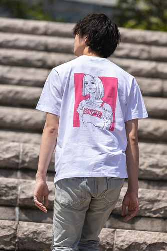 今の空気感を捉えた話題のイラストをバックスタイルで楽しめる、この夏のTシャツスタイルに必須の一枚。