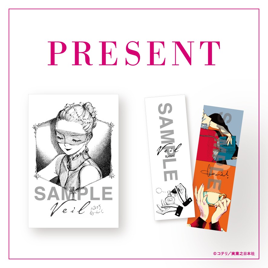 また、三省堂書店池袋本店では『veil』新ご購入のお客様に、三省堂書店池袋本店限定イラストカード&カラーイラストカード、既刊をご購入で各タイトル復刻特典をプレゼントいたします。