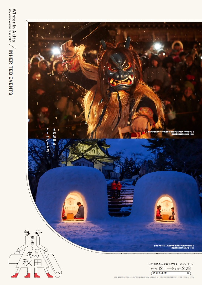 令和7年12月1日(月)から令和8年2月28日(土)まで、秋田県冬の観光キャンペーン「誰と行く?冬の秋田」を開催します。