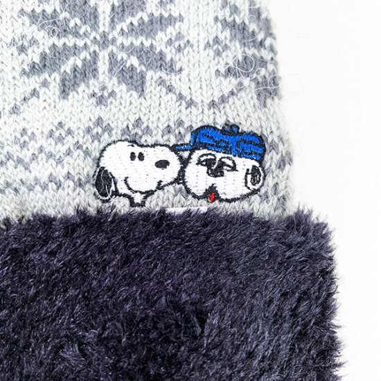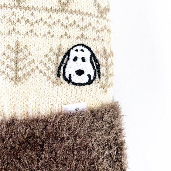 刺繍の拡大です。にっこりとしたスヌーピーがいますね。手をほかほかにあっためてくれそうです♪