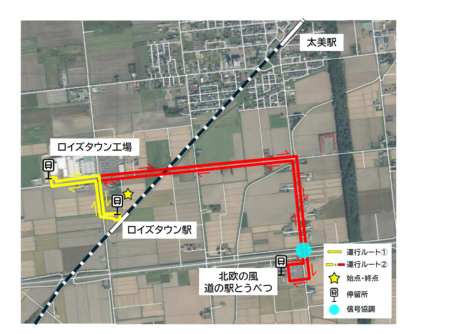 ルート① JRロイズタウン駅~ロイズタウン工場前 走行距離:片道660m